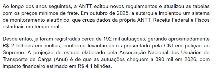 Justiça Federal suspende multas da ANTT relacionadas ao preço mínimo de frete