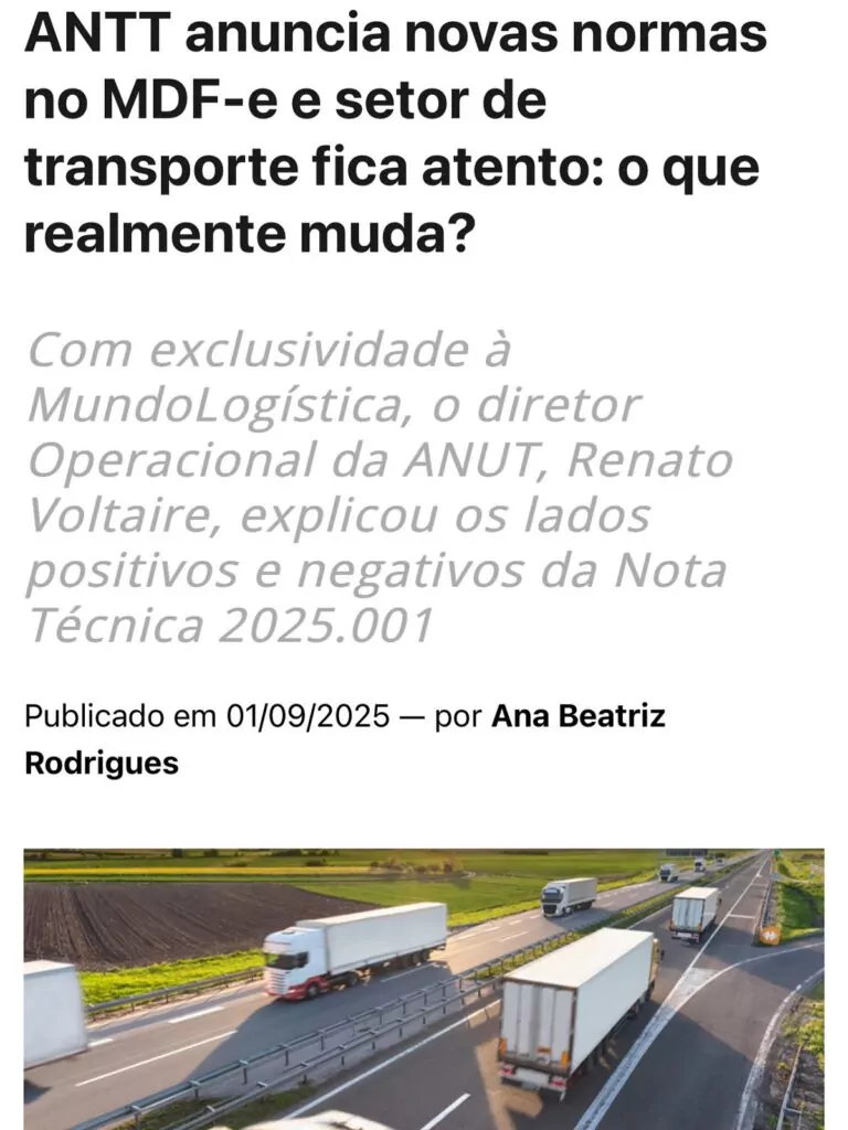 ANUT concede entrevista ao Mundo Logística sobre novas normas do MDF-e 1 de setembro de 2025 Leia mais